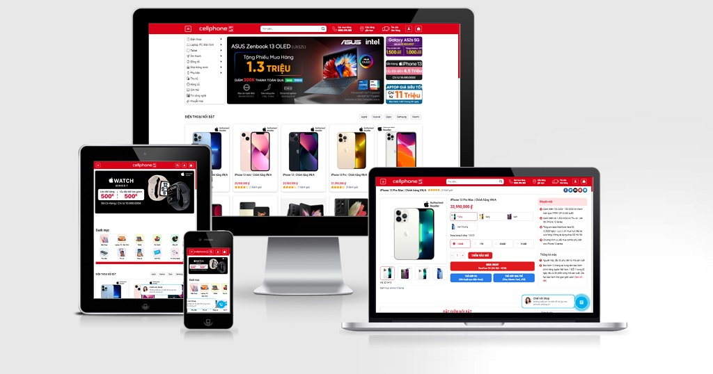 Theme WordPress bán điện thoại mẫu số 4 – CellphoneS. Giao diện web bán điện thoại di động tuyệt đẹp, chuyên nghiệp