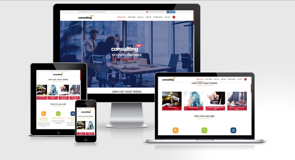 Theme WordPress công ty tư vấn giải pháp, tích hợp công nghệ. Với sự thiết kế hiện đại, đơn giản và tối ưu, nhấn vào trọng tâm của dịch vụ phù hợp cho các công ty tư vấn