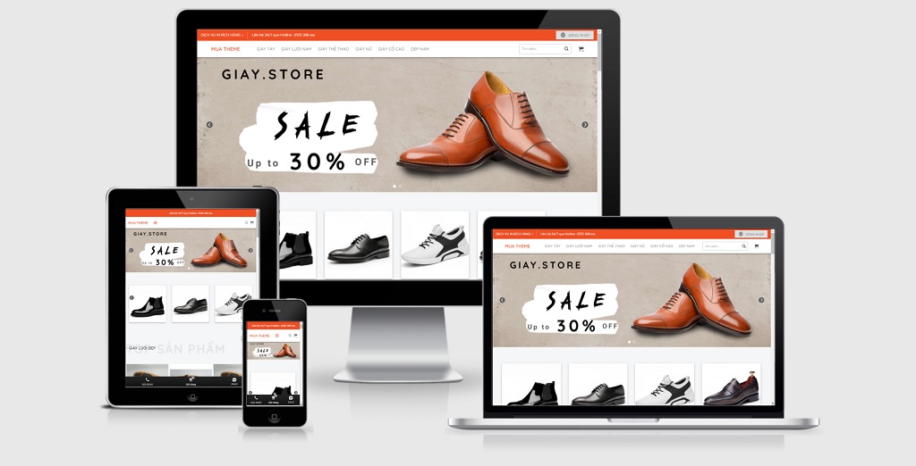 Theme Wordpress giày da cao cấp cho nam – Mẫu số 6 – phù hợp làm giao diện website bán hàng giày, dép, phụ kiện, túi xách