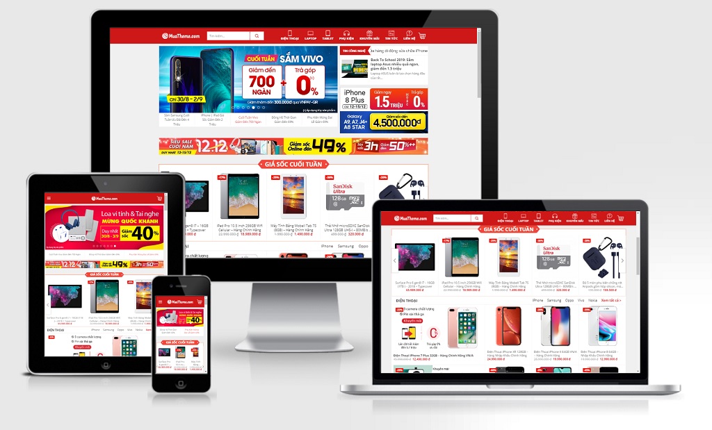 Theme WordPress giống Thế giới di động mẫu số 2. Thiết kế đẹp, độc đáo, phù hợp làm website bán điện thoại di động , điện tử, điện máy